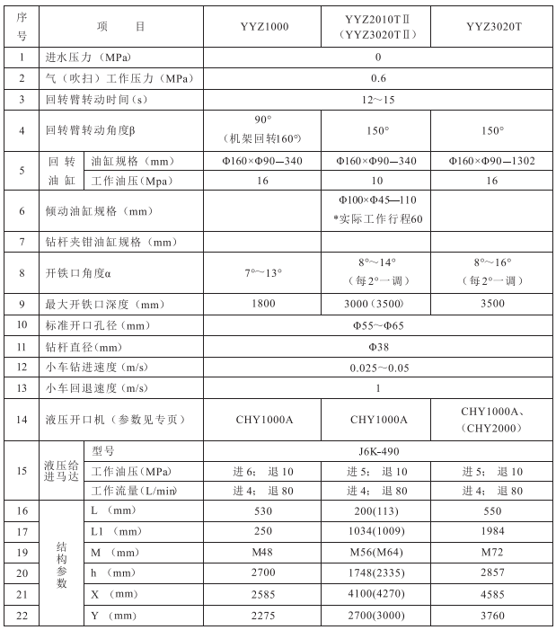 各型高炉开铁口机具有安装稳固、操作简单、使用安全,适用环境温度范围为-20P~ 200P;工作介质为阻燃液压油或46#抗磨液压油;本系统设备总成针对高炉铁口位置 (左、右侧)、高炉容积和钻深、泥炮的相对位置等都有对应的设备型号;并支持防尘水雾 化吹扫的选择,以及大高炉大钻深时的夹钳定心、钻杆跟踪和遥控操作等辅助功能。